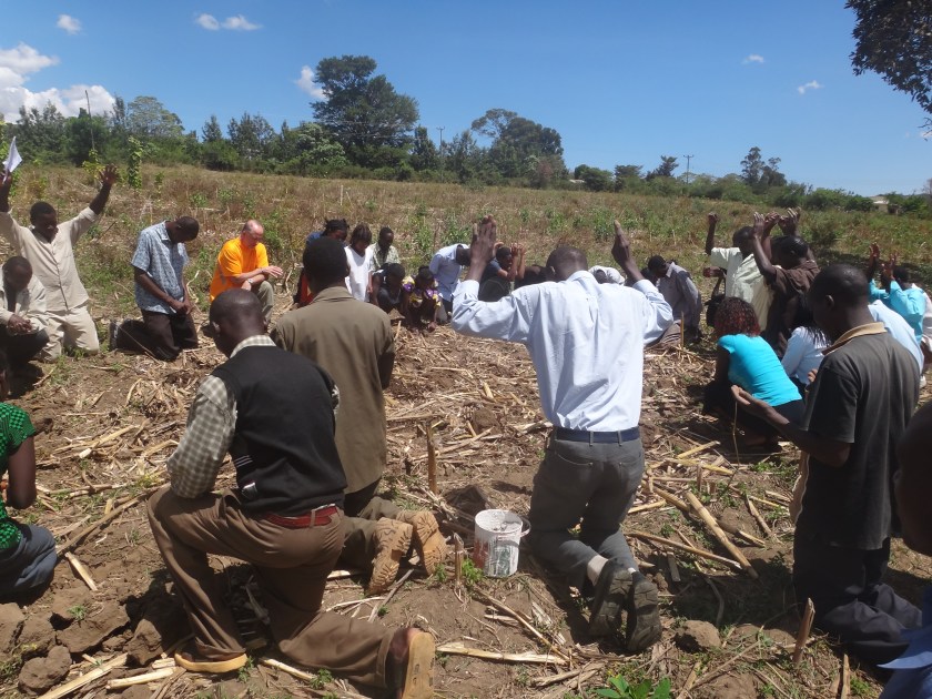 Praying over our community farming plot.