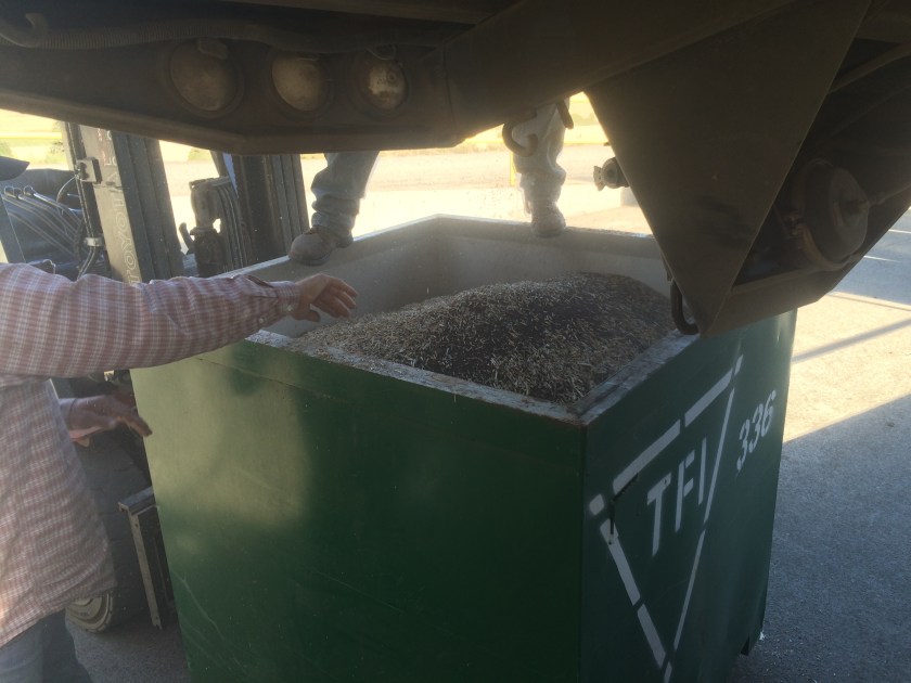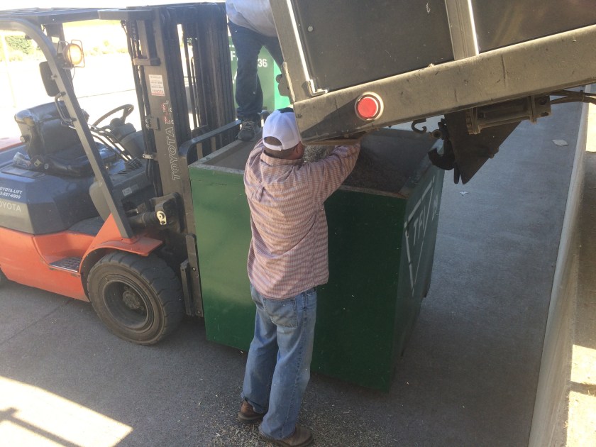 We dumped it into our truck to took it down the road to Triangle Farms. It was then unloaded into boxes and taken to be stored until it is cleaned.