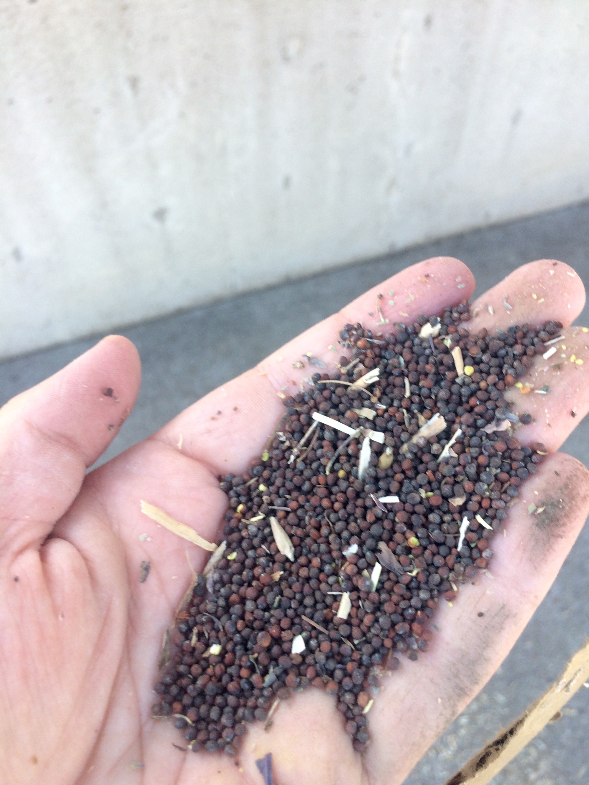 This year we grew our first crop of cabbage for seed. It is always fun to add a new crop to the farm, although learning curves can be steep, we had a lot of help to get the crop to harvest. But then came harvest, and using a brand of combine that no one had used before, we hit the ground running and patiently tweaked on our yellow gal for about 3 hours to get her all set right.