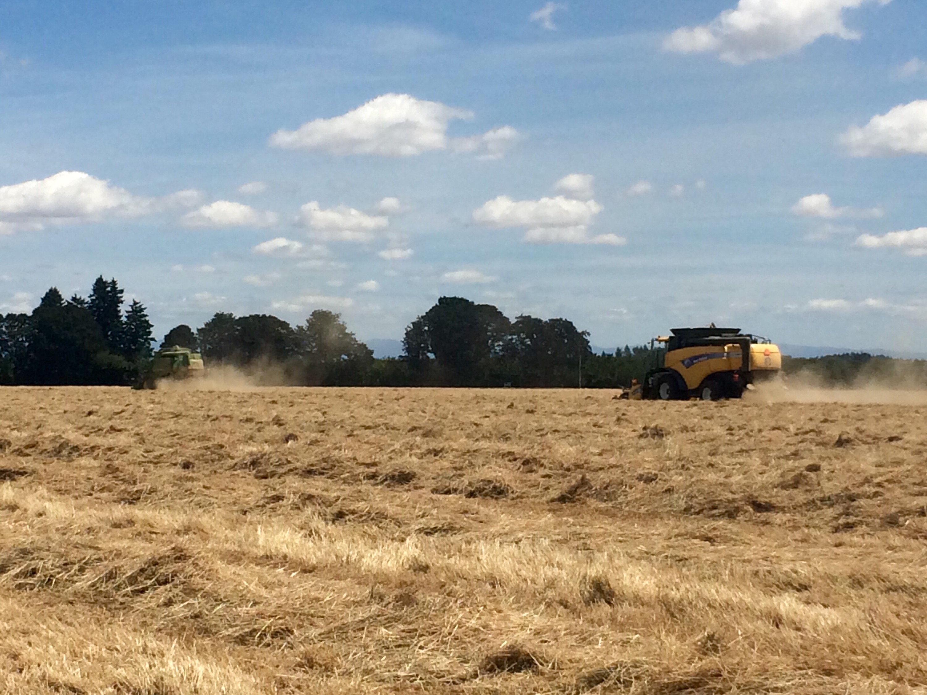 And now the yellow combine heads back to join the John Deere in ryegrass harvest. Back together again!