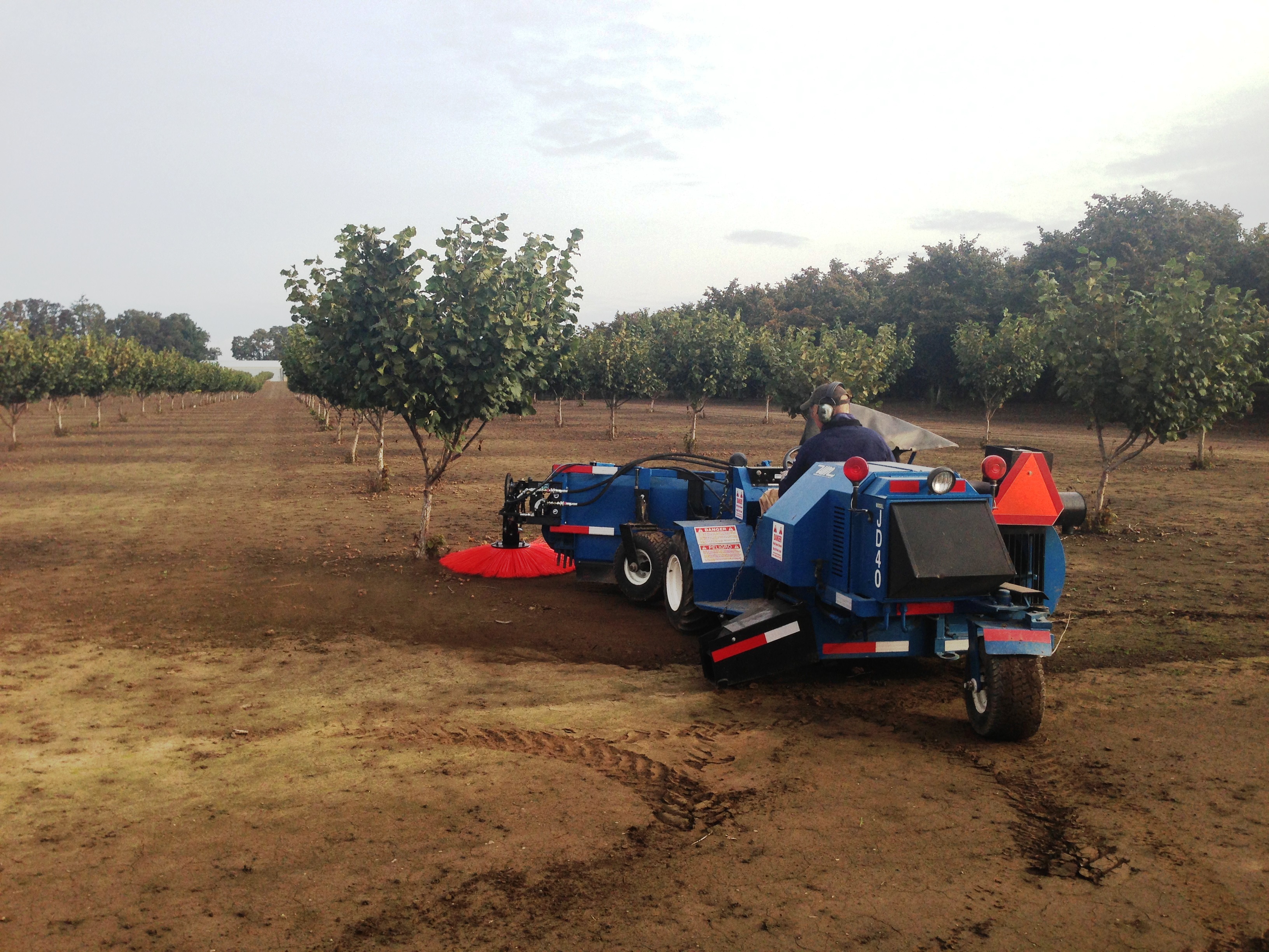 In this photo you can see he has gone down one side, the sweeper with the brush on the end does a great job of grabbing all those nuts.