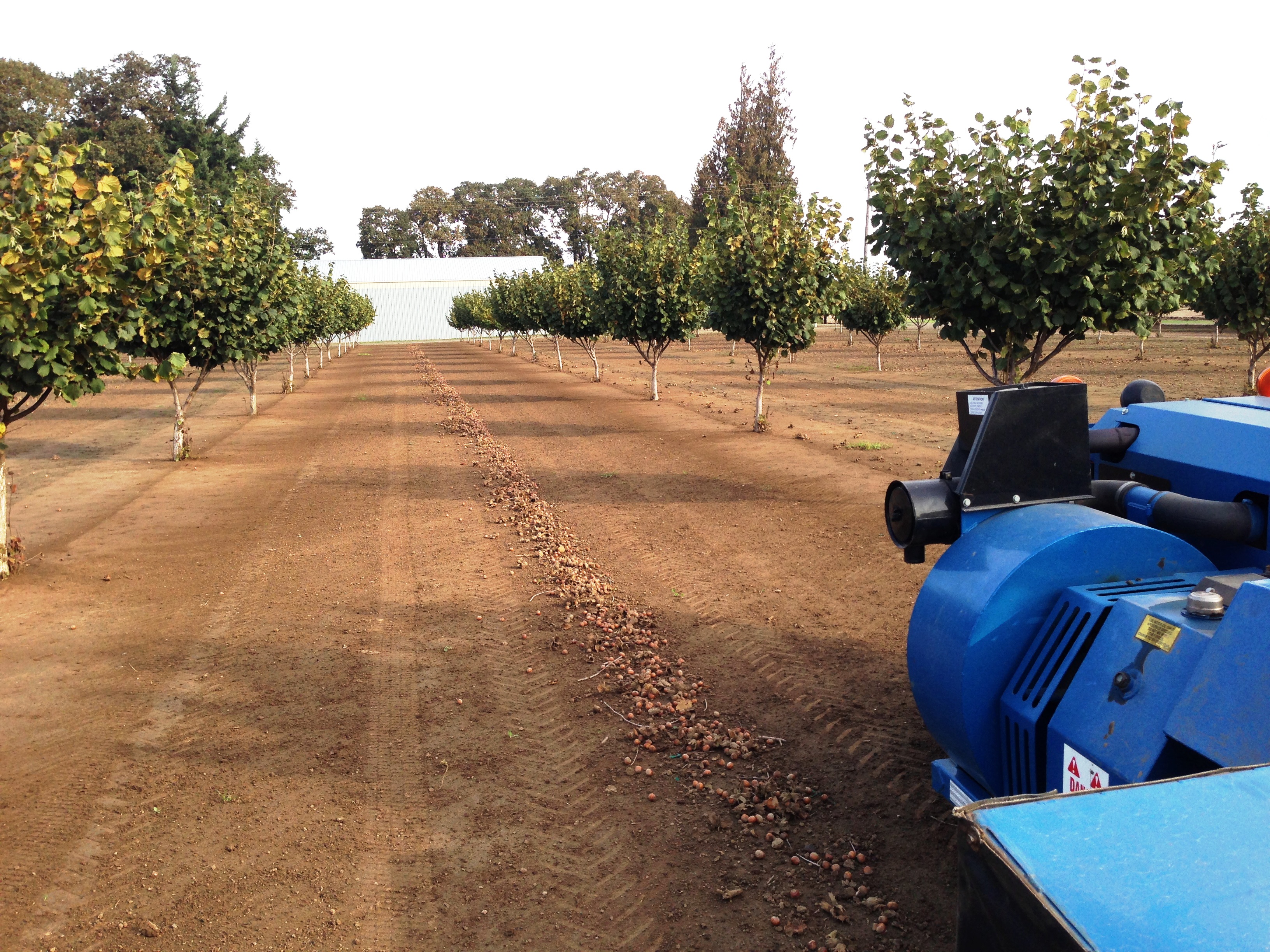 I’ll start with the end of our hazelnut (or filbert) harvest. We are picking up the nuts from our smallest trees. The trees are only 4 years old, so they don’t produce like the larger and older trees, but it’s still exciting to have our first crop to pick up ever! They say that once you start harvesting your trees, the crop will double every year, so next year the row should be twice as large!! Since I posted a ton of photos of the harvester, here are some of the actual sweeping of the nuts into rows.